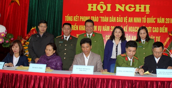 Đại diện các cơ quan, đơn vị phường Kênh Dương kí kết giao ước thi đua.
