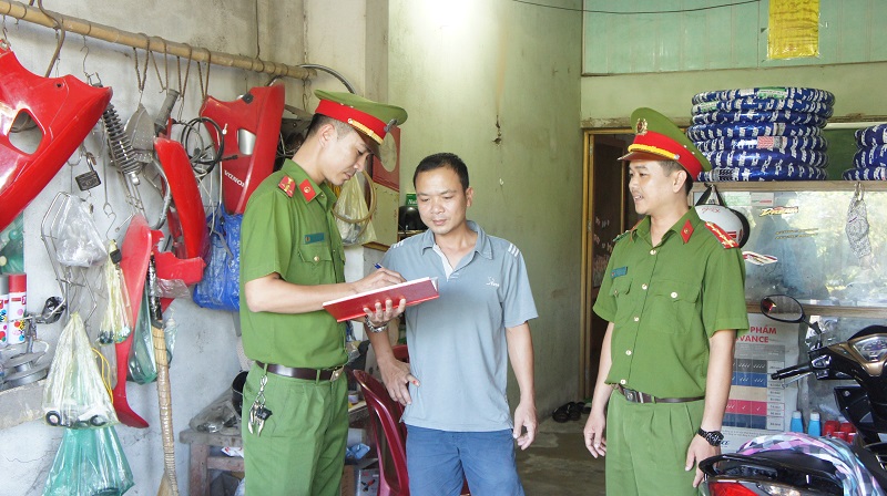 Lực lượng CAP Ngọc Xuyên kiểm tra hoạt động kinh doanh của một số hộ dân trên địa bàn