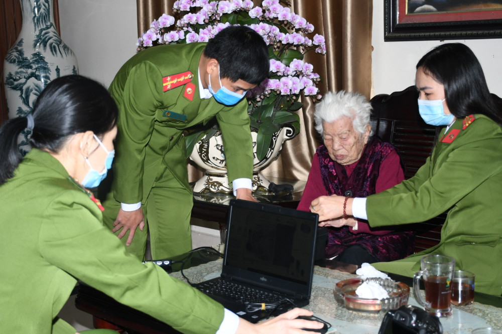 Tiếp đến, cán bộ chiến sỹ thuộc Đội Cảnh sát quản lý hành chính về trật tự xã hội cũng thực hiện các thủ tục cấp CCCD tại nhà cho Mẹ Việt Nam anh hùng Trần Thị Bệ, sinh năm 1921, trú tại Tổ 9, phường Đằng Hải, như một lời tri ân đối với sự hy sinh, mất mát của Mẹ vì sự nghiệp giải phóng, độc lập dân tộc.