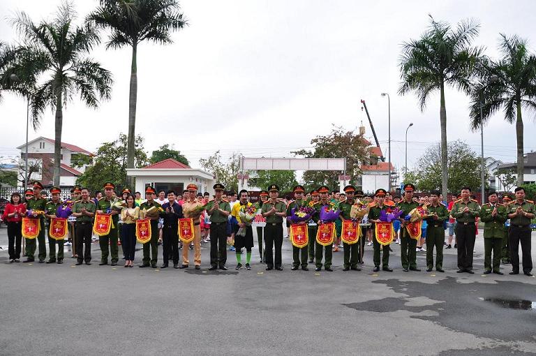 Lãnh đạo Công an quận tặng hoa động viên các Đội thi đấu