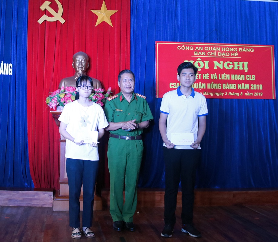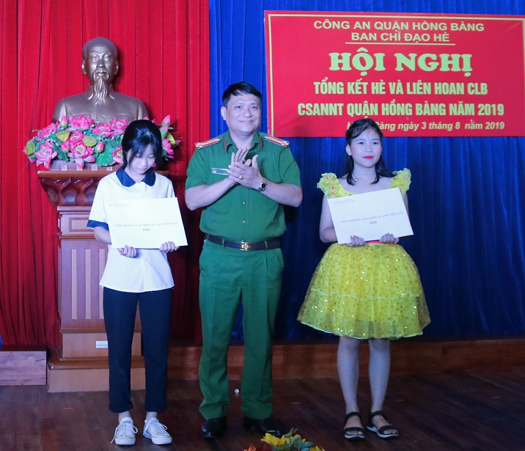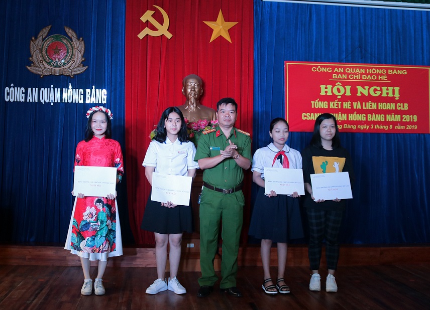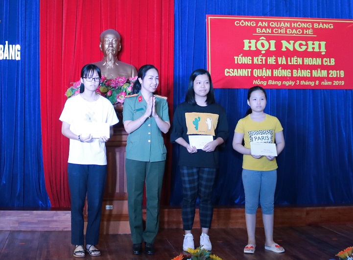 Nhân dịp này, Ban chỉ đạo hè Công an quận Hồng Bàng đã biểu dương, khen thưởng con cán bộ chiến sỹ Công an quận: 3 cháu đoạt giải học sinh giỏi cấp thành phố, 3 cháu đạt học sinh giỏi cấp quận, 108 cháu đạt học sinh giỏi, 29 cháu đạt học sinh tiên tiến; 8/10 CLB chiến sỹ an ninh nhỏ tuổi xếp loại xuất sắc; học sinh nghèo vượt khó…