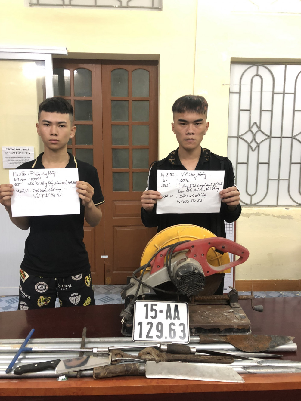 Tổ công tác phát hiện trong nhà trọ có 4 người gồm: Phùng Huy Hoàng, sinh năm 2004, ĐKHK tại Hàng Tổng, phường Nam Hải, Hải An; Vũ Huy Hoàng, sinh năm 2002, ĐKTT tại Lương Khê 3, phường Tràng Cát, quận Hải An; Ph. Ph. L, sinh năm 2006, ĐKTT tại phường Nam Hải, quận Hải An; và Đ.T.D.L sinh 2006, phường Nam Hải, quận Hải An.