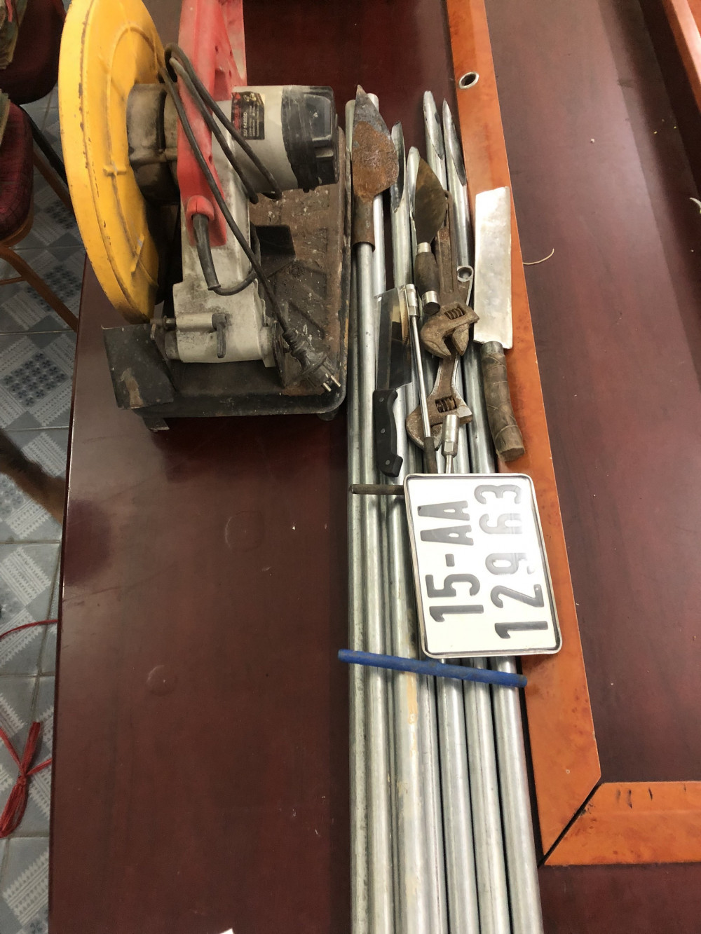 Lực lượng kiểm tra phát hiện tại gầm giường và nhà vệ sinh có nhiều dao kiếm tự chế, 5 thanh giáo tuýp sắt đầu nhọn, một thanh giáo tuýp phóng lợn có độ dài khoảng 1m. Một cưa máy dùng để cắt ống tuýp.