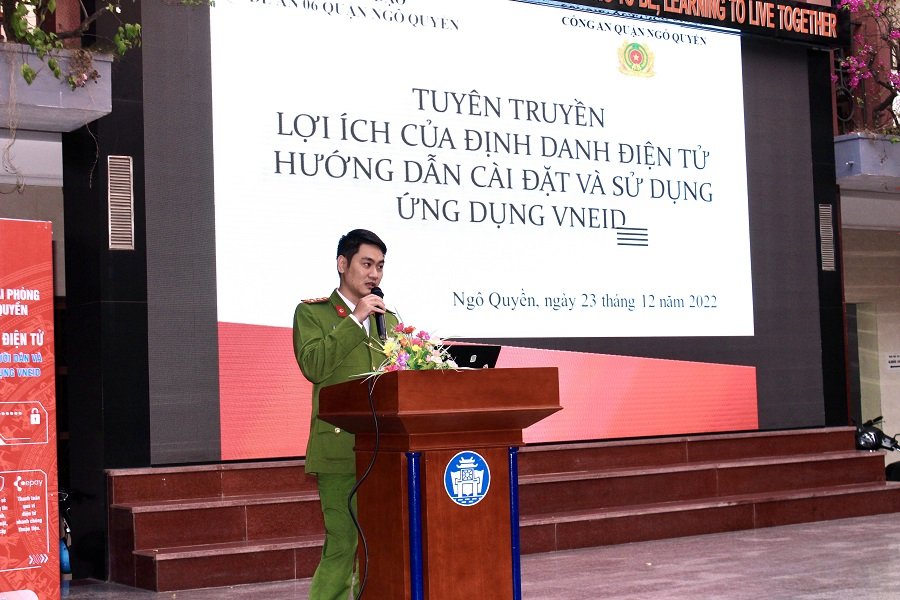 Cùng với đó, Đội Cảnh sát Quản lý hành chính về trật tự xã hội, Công an quận Ngô Quyền đã phối hợp cùng Công an phường Máy Tơ tổ chức hướng dẫn, hỗ trợ người dân, đội ngũ cán bộ, công nhân viên chức, lao động tại Bệnh viện cách cài đặt ứng dụng VneID để kích hoạt và sử dụng tài khoản định danh điện tử.
