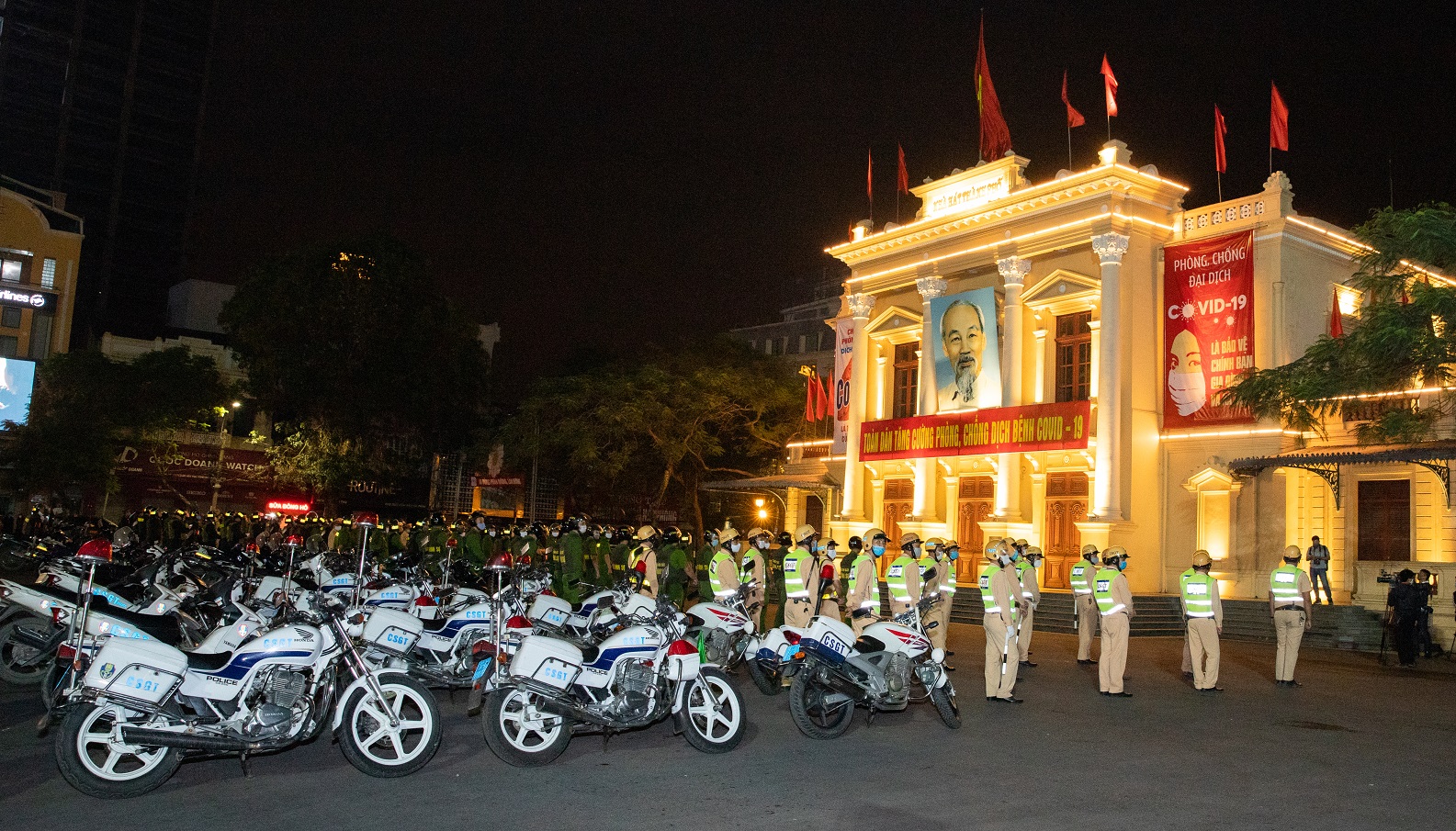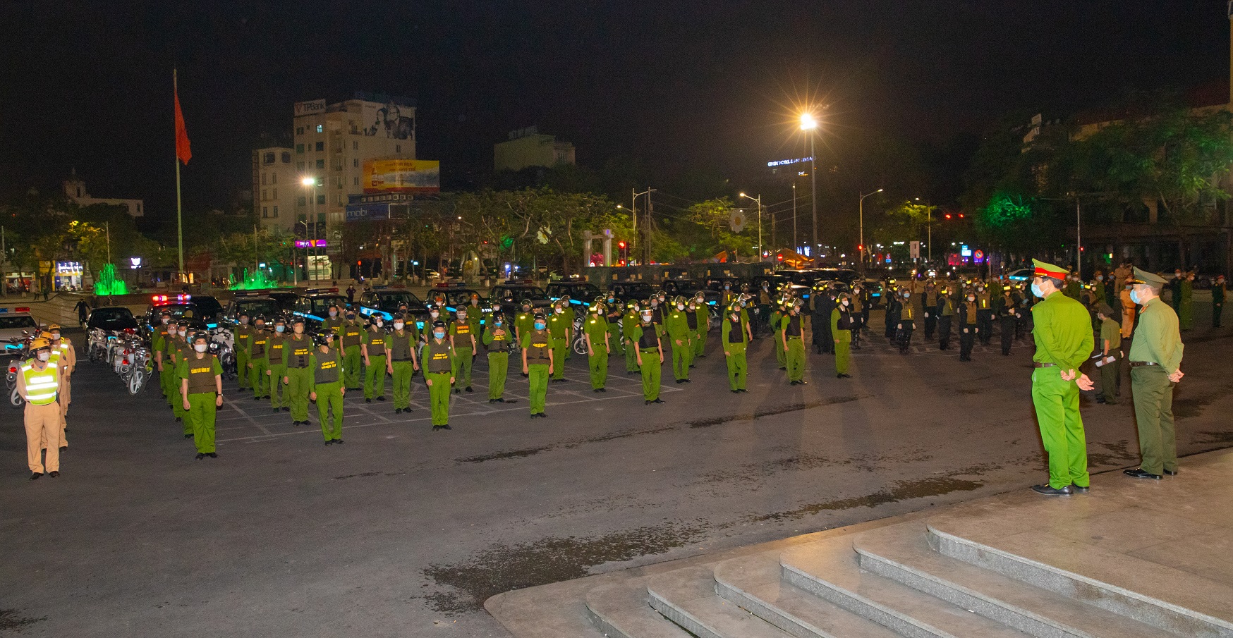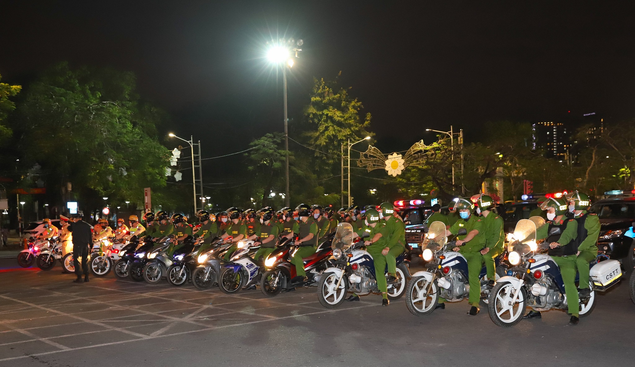 Ngay sau lễ ra quân, các lực lượng công an gồm Cảnh sát giao thông, Cảnh sát cơ động, Cảnh sát hình sự, 113… đã diễu hành, biểu dương lực lượng tại các tuyến phố chính và tỏa đi tuần tra, kiểm soát sau thời điểm 22h.
