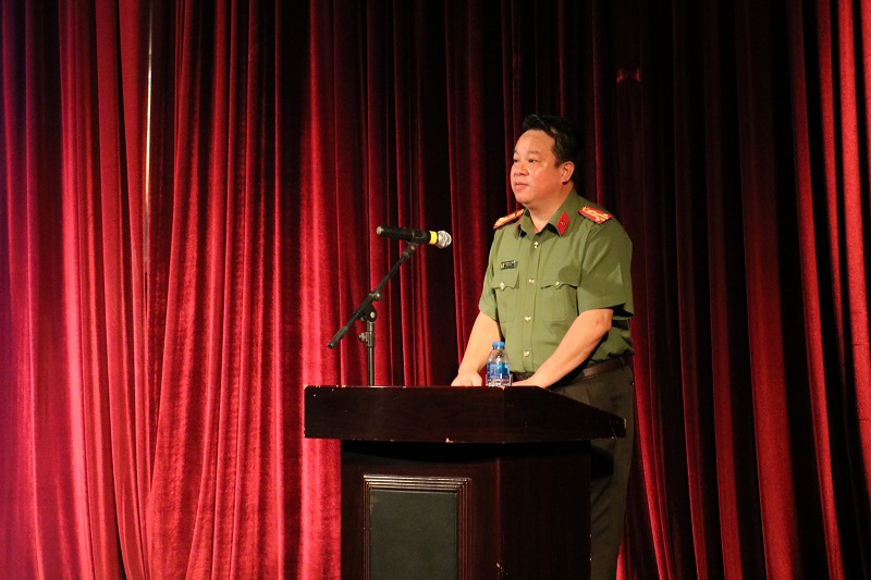 Đại tá Nguyễn Quốc Hùng, Phó Giám đốc CATP phát biểu tại buổi gặp mặt