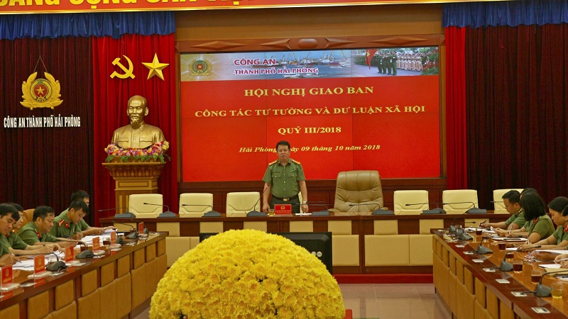 Ngày 9-10, Công an thành phố tổ chức Hội nghị giao ban Công tác tư tưởng và Dư luận xã hội Qúy III/2018. Đại tá Nguyễn Quốc Hùng, Phó Giám đốc CATP dự và chủ trì hội nghị.