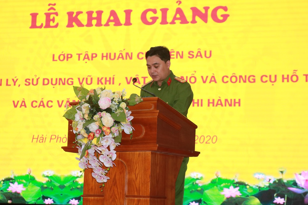 Phát biểu chỉ đạo tại lễ khai giảng, Đại tá Bùi Trung Thành, Phó Giám đốc CATP nhấn mạnh: Luật Quản lý, sử dụng VK, VLN, CCHT được ban hành đã góp phần thể chế hóa chủ trương, đường lối, chính sách của Đảng, từng bước hoàn thiện hệ thống pháp luật, tạo sự thống nhất về nhận thức, tổ chức trong quản lý VK, VLN, CCHT; tạo hành lanh pháp lý bảo đảm quyền, lợi ích hợp pháp cho các tổ chức, cá nhân liên quan.
