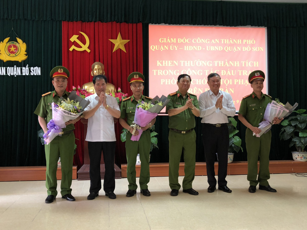 Để kịp thời động viên Công an các địa phương lập thành tích trong đấu tranh trấn áp các loại tội phạm, sáng 19-9, Đại tá Nguyễn Văn Coỏng-Thủ trưởng Cơ quan Cảnh sát điều tra, Phó Giám đốc CATP đã biểu dương, khen thưởng Công an huyện Vĩnh Bảo và Công an quận Đồ Sơn.