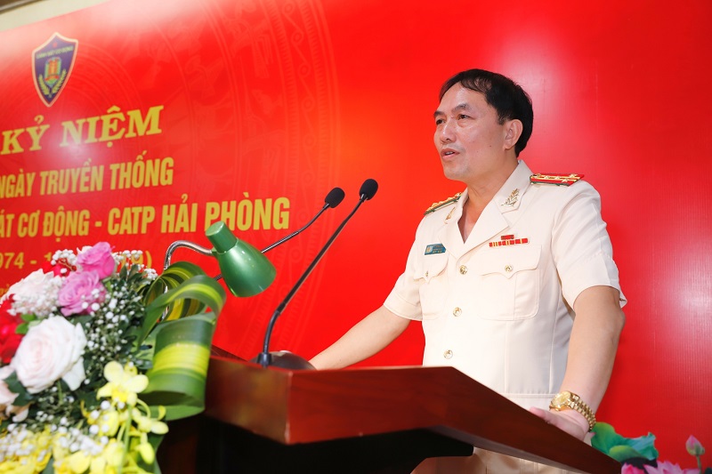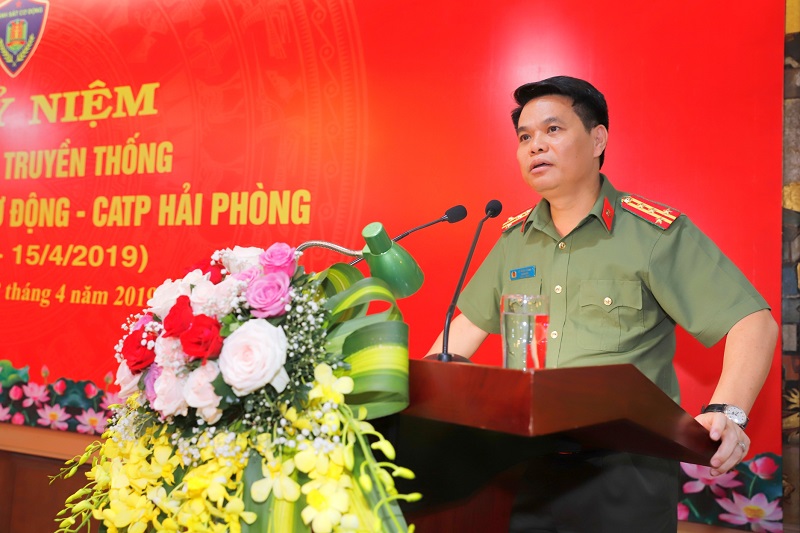 Tại buổi lễ, Đại tá Vũ Minh Sơn, Bí thư Đảng ủy, Trưởng Phòng Cảnh sát cơ động CATP đọc diễn văn ôn lại chặng đường lịch sử vẻ vang 45 năm xây dựng, chiến đấu và trưởng thành của lực lượng Cảnh sát cơ động cả nước nói chung, lực lượng Cảnh sát cơ động CATP Hải Phòng nói riêng và khẳng định, cùng với các lực lượng CATP, lực lượng Cảnh sát cơ động – CATP không ngừng nâng cao bản lĩnh chính trị và tinh thần cảnh giác cách mạng; thường xuyên nắm chắc tình hình, làm tốt công tác tham mưu cho Đảng ủy, Giám đốc CATP, chủ động xây dựng các phương án, tổ chức luyện tập, diễn tập nâng cao trình độ, nghiệp vụ; bảo đảm sẵn sàng ra quân làm nhiệm vụ; chủ động phối hợp đấu tranh phòng, chống tội phạm, nhất là tội phạm nguy hiểm; bảo vệ an toàn các mục tiêu quan trọng về chính trị, kinh tế, văn hóa của thành phố.