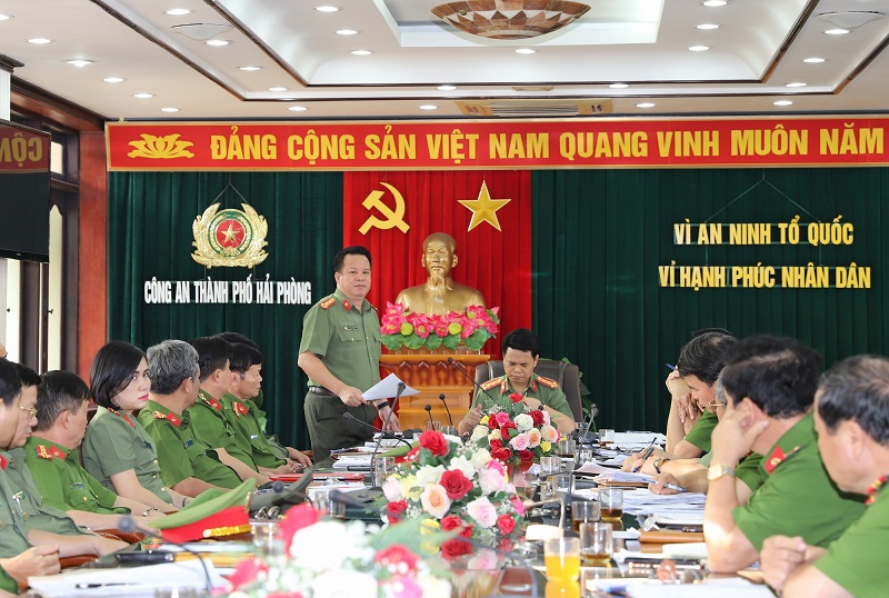 Đại tá Nguyễn Quốc Hùng, Phó Bí thư Đảng ủy, Phó giám đốc CATP quán triệt nội dung đợt thi đua đặc biệt
