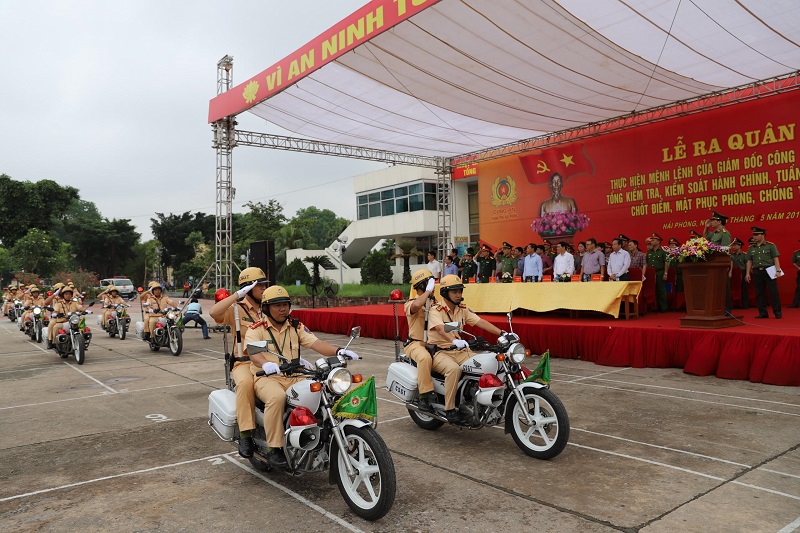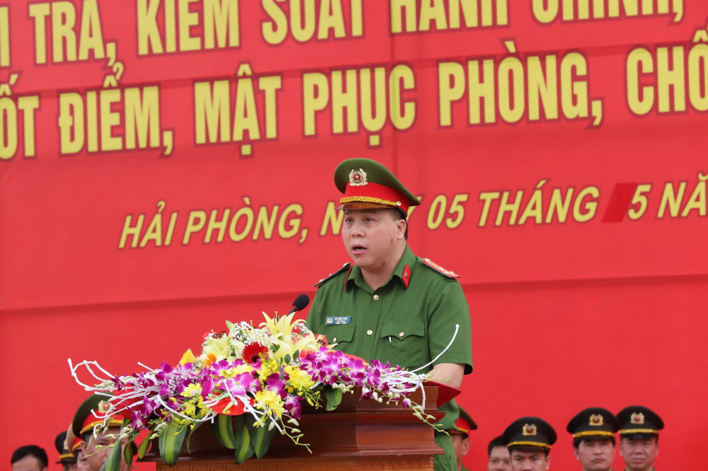 Tại lễ ra quân, Thượng tá Bùi Trung Thành, Phó giám đốc CATP thay mặt lãnh đạo CATP quán triệt Mệnh lệnh số 01của Giám đốc CATP. Mệnh lệnh của Giám dốc CATP nêu rõ: Trong thời gian qua, Bộ Công an đã chỉ đạo Công an các tỉnh, thành phố tổ chức lực lượng, triển khai đồng bộ các biện pháp tập trung đấu tranh, ngăn chặn, trấn áp các loại tội phạm, tệ nạn xã hội, đặc biệt là các băng, ổ nhóm tội phạm liên tỉnh, quy mô, núp bóng doanh nghiệp để thực hiện hành vi cho vay nợ lãi, giết người, cố ý gây thương tích, mua bán, vận chuyển trái phép ma túy, gây phức tạp về ANTT. Tại Hải Phòng, Đảng bộ, các cấp chính quyền đã tích cực chỉ đạo các đơn vị thực hiện các hoạt động kỷ niệm các ngày lễ lớn trong tháng 5, đây cũng là thời điểm để các loại tội phạm lợi dụng hoạt động phạm tội, vi phạm pháp luật, đòi hỏi các lực lượng CATP phải chủ động, tích cực, có các đối sách ngăn chặn, giải quyết kịp thời nhằm đảm bảo an ninh, giữ gìn TTATXH trên địa bàn thành phố. Ngày 27-4-2019, Giám đốc CATP ban hành Mệnh lệnh số 01 về tổng kiểm tra, kiểm soát hành chính, tuần tra vũ trang, chốt điểm, mật phục phòng, chống tội phạm trên địa bàn thành phố. Trong đó, Giám đốc CATP yêu cầu Công an các đơn vị, địa phương căn cứ chức năng, nhiệm vụ thực hiện nghiêm 6 nội dung của mệnh lệnh:
