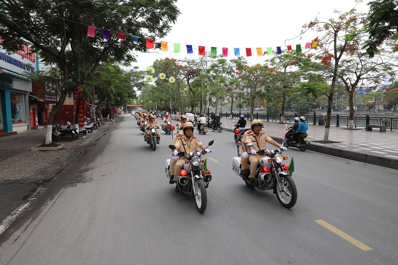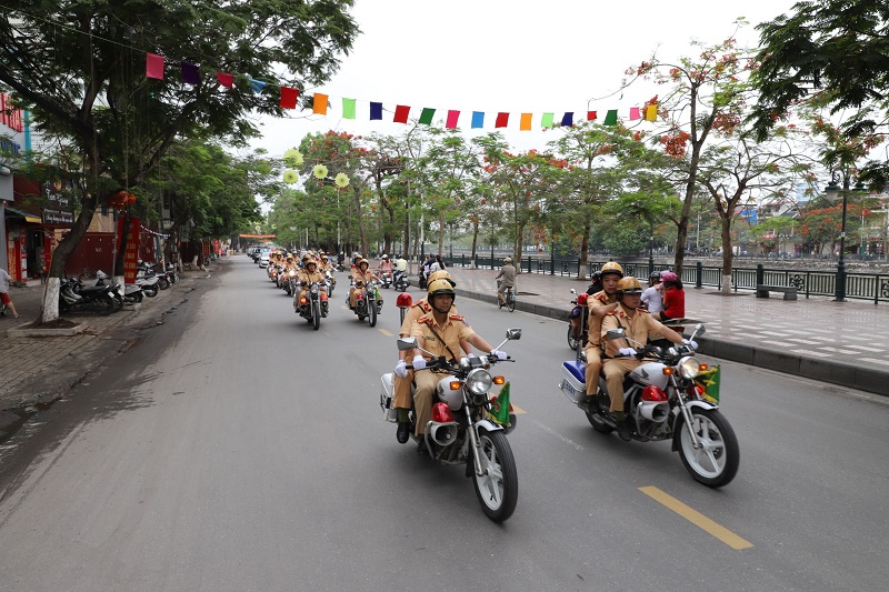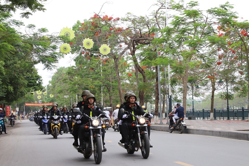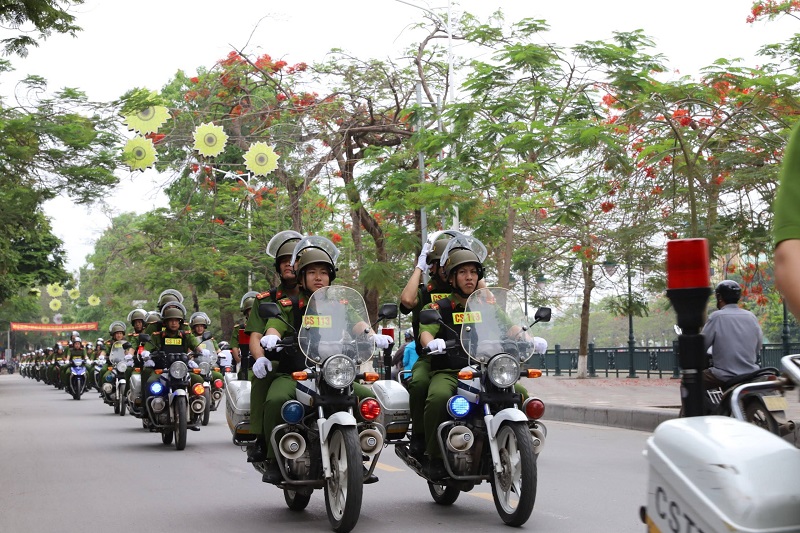 Ngay sau lễ ra quân, gần 1000 CBCS Công an các đơn vị, địa phương đã diễu hành, biểu dương lực lượng trên các tuyến phố khu vực trung tâm thành phố.
