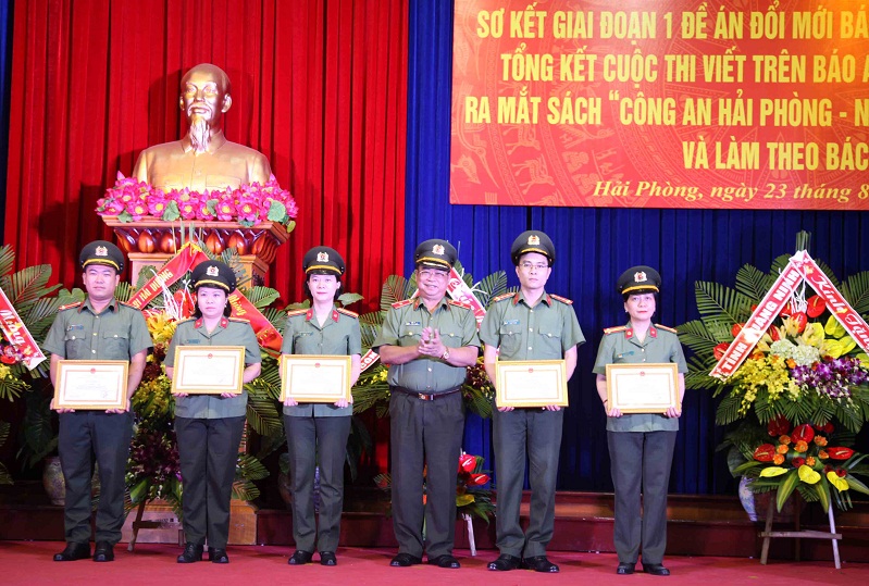 Nhân dịp này, CATP đã tặng giấy khen 5 tập thể và 5 cá nhân có thành tích xuất sắc trong thực hiện giai đoạn 1 Đề án và tổ chức Cuộc thi viết “Công an Hải Phòng – Những tấm gương học và làm theo Bác Hồ”; tặng giấy khen 6 tác giả xuất sắc nhất cuộc thi. Cũng tại hội nghị, các đại biểu đã chứng kiến ký kết phối hợp tuyên truyền giữa CATP với các đơn vị; ký kết hợp tác tuyên truyền giữa Báo An ninh Hải Phòng với các cơ quan, địa phương, đơn vị.