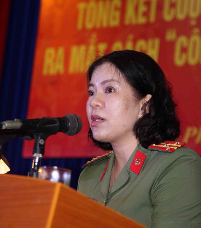 Thượng tá Nguyễn Thu Hồng – Tổng biên tập Báo An ninh Hải Phòng phát biểu tại hội nghị