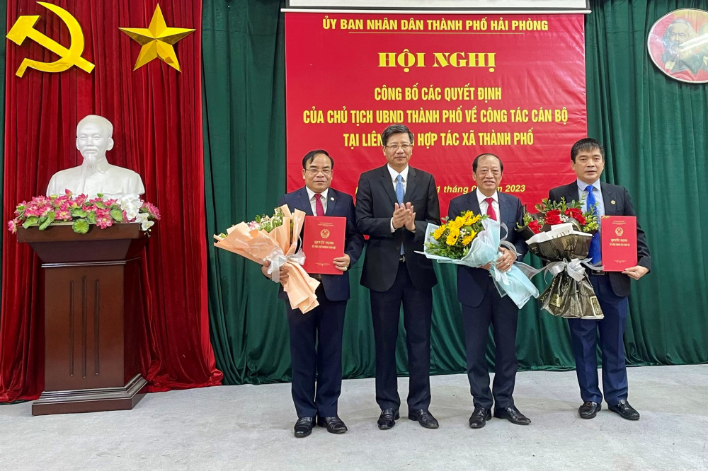 Trao Quyết định và tặng hoa chúc mừng các đồng chí Ngô Ngọc Khánh và Nguyễn Minh Hoàng, Phó Chủ tịch Thường trực UBND thành phố Lê Anh Quân bày tỏ tin tưởng, với những kinh nghiệm trong quá trình công tác, trên cương vị mới, các đồng chí sẽ phát huy được kinh nghiệm, năng lực của mình cùng với tập thể lãnh đạo, cán bộ Liên minh Hợp tác xã thành phố đoàn kết hoàn thành tốt nhiệm vụ, đóng góp vào sự phát triển chung của thành phố, nhất là trong quá trình xây dựng Nông thôn mới và Nông thôn mới kiểu mẫu.