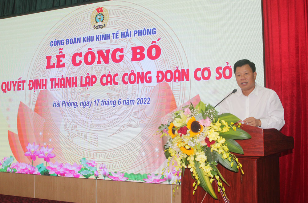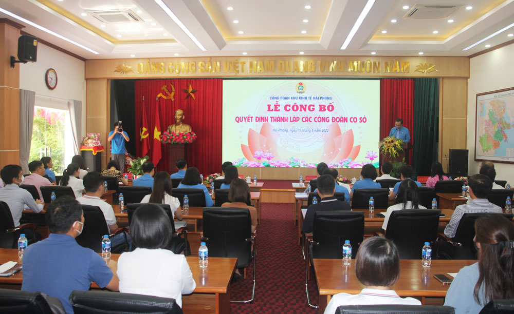 Tại Hội nghị đã công bố các quyết định của Ban Thường vụ Công đoàn Khu Kinh tế Hải Phòng thành lập 40 tổ chức Công đoàn cơ sở tại các doanh nghiệp trong khu công nghiệp, khu kinh tế trên địa bàn thành phố.
