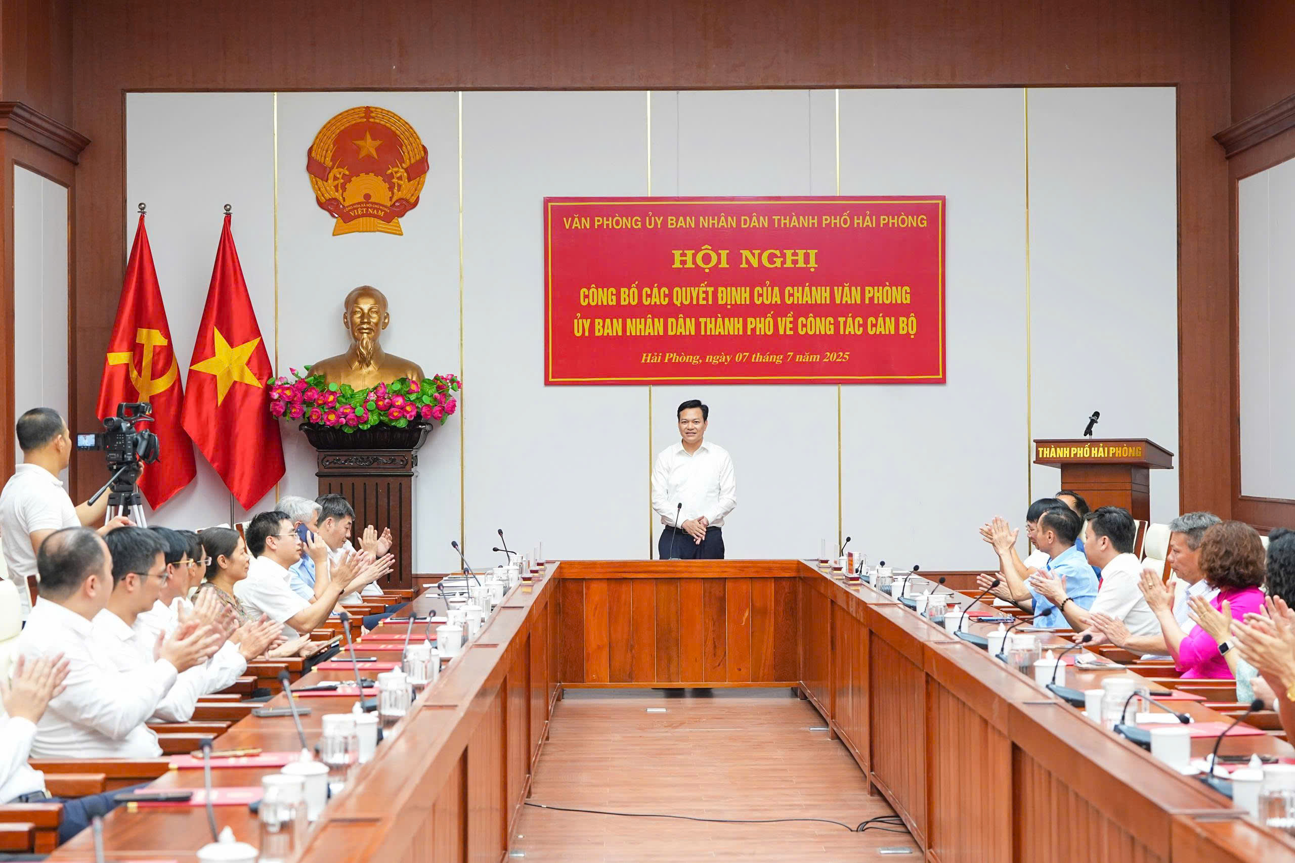 Hội nghị đã công bố các Quyết định bổ nhiệm Trưởng, Phó các phòng chuyên môn thuộc Văn phòng, gồm: Phòng Tổng hợp; Phòng Nội vụ và Kiểm tra, giám sát; Phòng Nội chính; Phòng Tài chính; Phòng Nông nghiệp và Môi trường; Phòng Xây dựng và Công thương; Phòng Văn hóa – Xã hội; Phòng Hành chính – Quản trị; Cổng Thông tin điện tử thành phố; Trung tâm Hội nghị và Nhà khách thành phố.