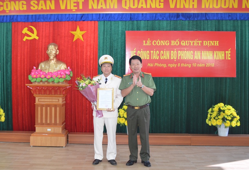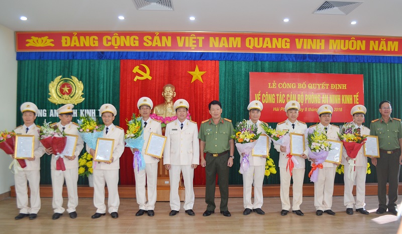 Công bố các Quyết định của Giám đốc CATP về việc bố trí 8 đồng chí là Phó Trưởng Phòng PA81 và Phó Trưởng Phòng PA84 giữ chức vụ Phó Trưởng phòng An ninh kinh tế CATP Hải Phòng.
