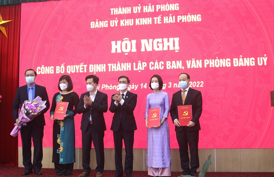 Theo các Quyết định của Ban Thường vụ Đảng ủy Khu Kinh tế Hải Phòng, thành lập Ban Tổ chức, Ban Tuyên giáo, Văn phòng Đảng ủy Khu Kinh tế Hải Phòng.