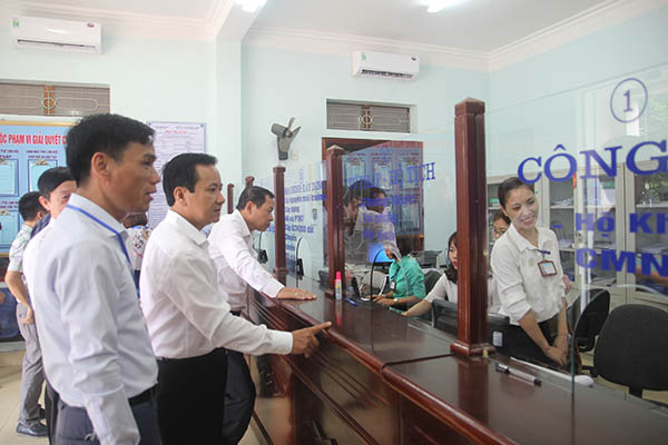 Trong ảnh: Phó Chủ tịch UBND thành phố Nguyễn Văn Thành kiểm tra tại Bộ phận Một cửa UBND xã Thủy Sơn, huyện Thủy Nguyên ngày 26/9/2018