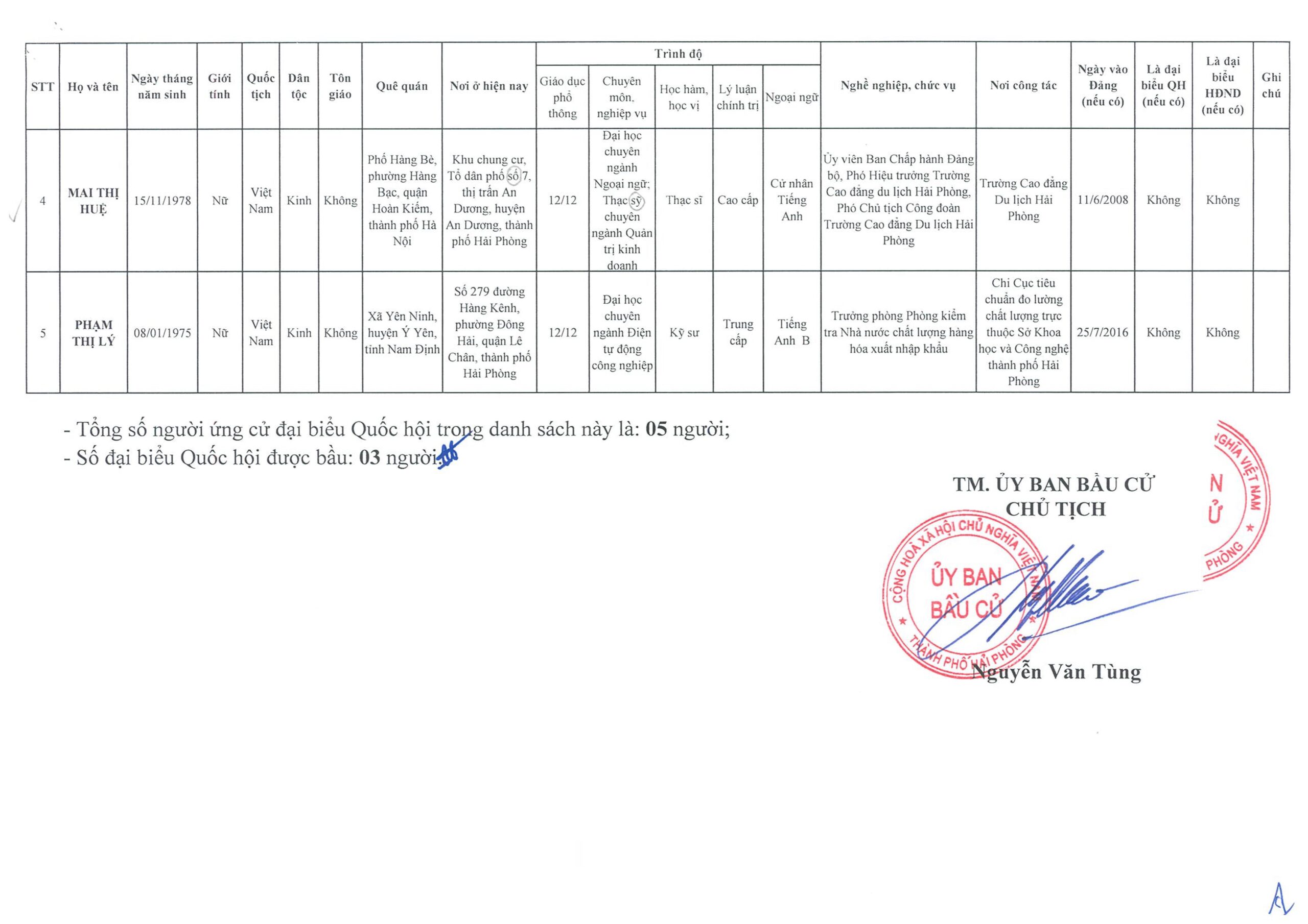 – Tổng số người ứng cử đại biểu Quốc hội trong danh sách này là: 05 người.
