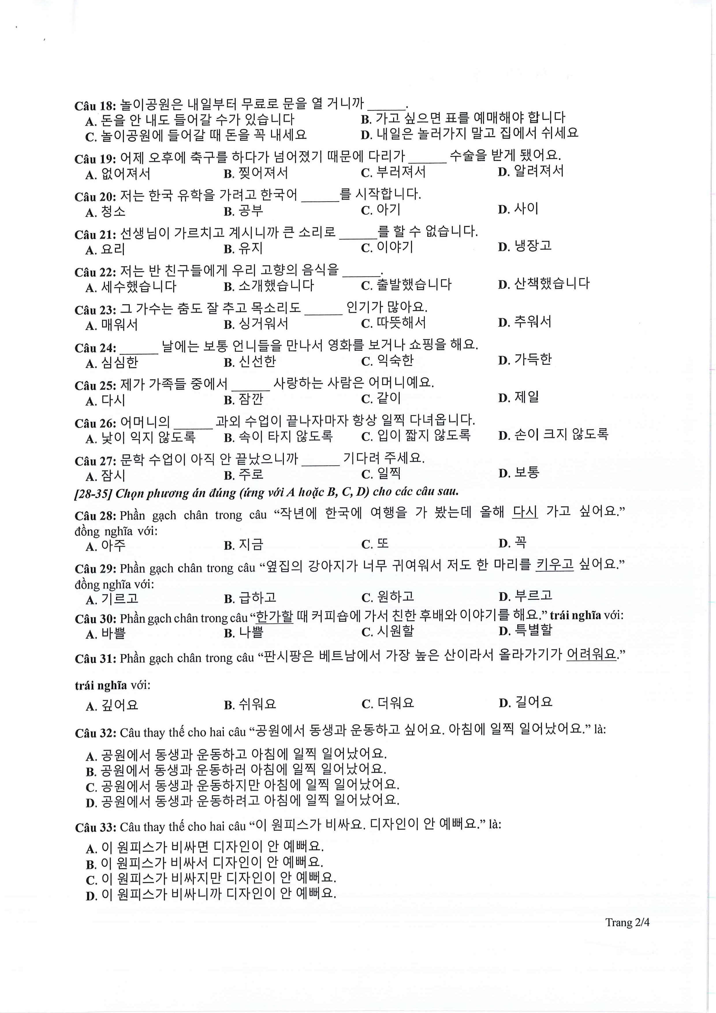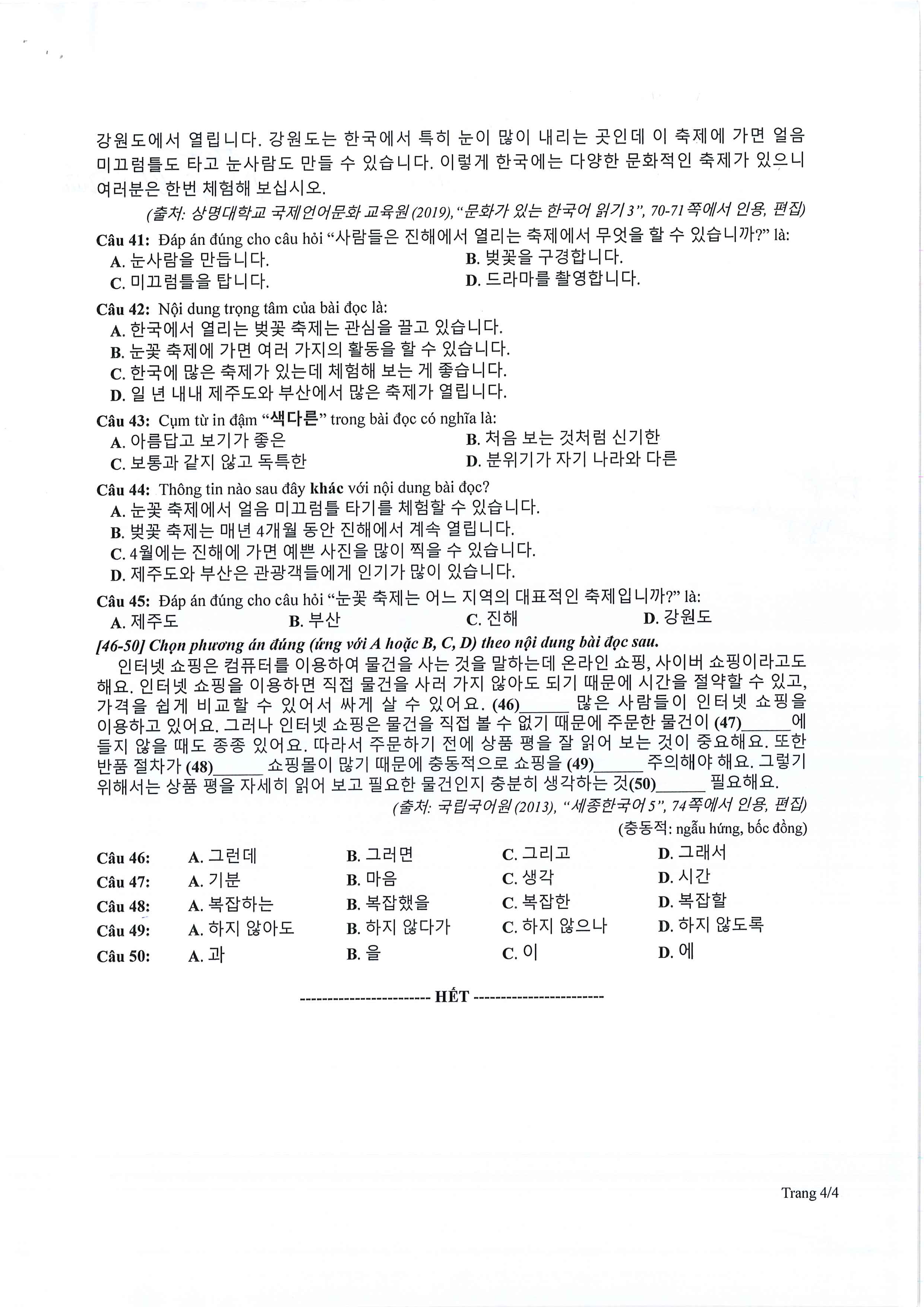 15. Đề thi tham khảo: Môn Tiếng Hàn.