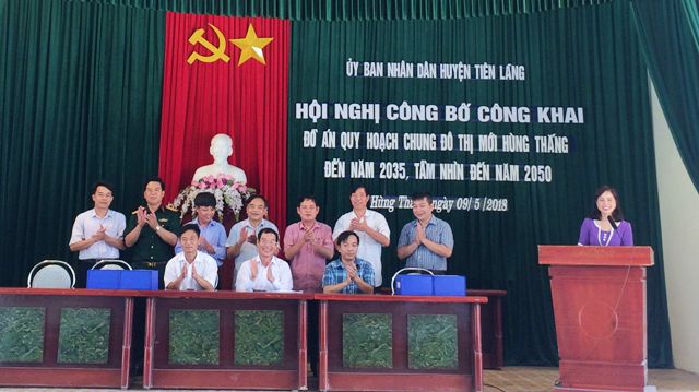 Sáng 9/5, tại nhà văn hóa xã Hùng Thắng, UBND huyện Tiên Lãng phối hợp với Sở Xây dựng thành phố tổ chức hội nghị công bố công khai đồ án Quy hoạch chung đô thị mới Hùng Thắng đến năm 2035, tầm nhìn đến năm 2050.