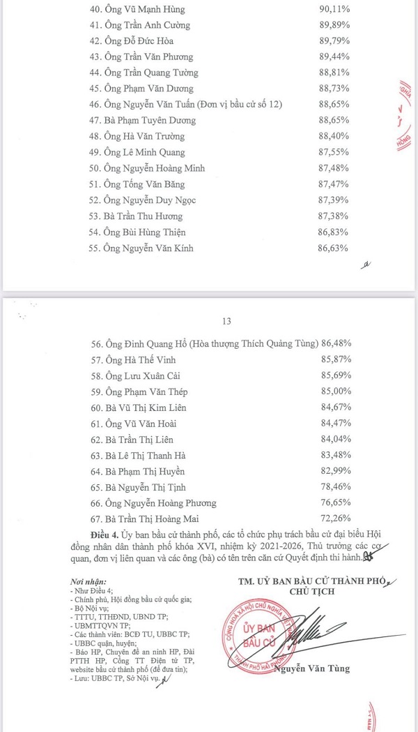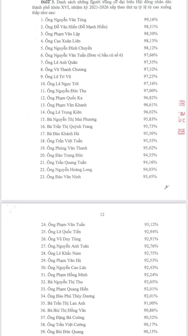 Ngày 28/5, Ủy ban bầu cử thành phố ban hành Nghị quyết số 14/NQ-UBBC về việc công bố kết quả bầu cử và danh sách trúng cử đại biểu HĐND thành phố khóa XVI, nhiệm kỳ 2021-2026.