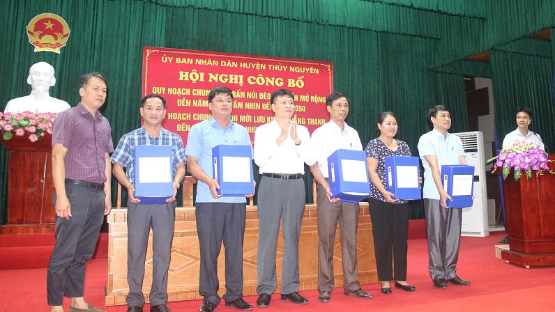 Ông Đinh Chính Quyền, Phó chủ tịch UBND huyện Thủy Nguyên trao hồ sơ cho các xã, thị trấn được phê duyệt quy hoạch