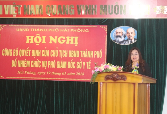 Chiều 19/01/2018, Sở Y tế Hải Phòng tổ chức Hội nghị công bố Quyết định của Chủ tịch UBND thành phố về bổ nhiệm Phó Giám đốc Sở Y tế. Phó Chủ tịch UBND thành phố Lê Khắc Nam tới dự và chỉ đạo hội nghị; cùng dự hội nghị có đồng chí Phạm Xuân Thanh – Bí thư Đảng ủy khối các cơ quan thành phố, lãnh đạo Sở Nội vụ, đại diện một số ban ngành thành phố, lãnh đạo các đơn vị trực thuộc ngành y tế.