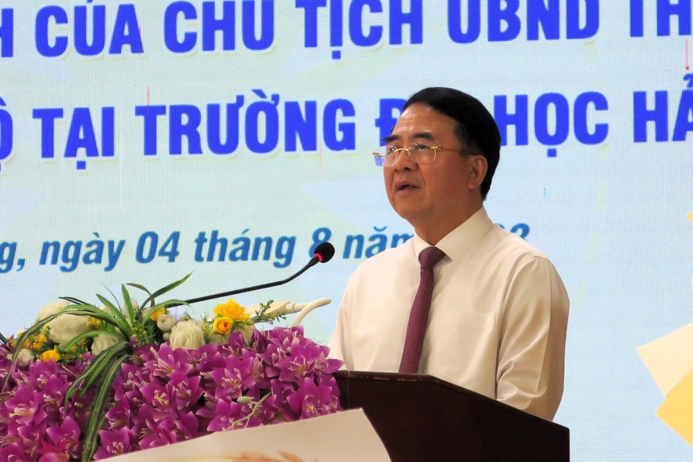 Phát biểu tại Hội nghị, Phó Chủ tịch UBND thành phố Lê Khắc Nam chúc mừng các đồng chí lãnh đạo mới nhận Quyết định. Phó Chủ tịch UBND thành phố nhấn mạnh đây là những cán bộ được đào tạo bài bản, có học hàm học vị cao, trải qua nhiều vị trí công tác, được sự tín nhiệm của lãnh đạo thành phố cũng như các đơn vị. Phó Chủ tịch mong muốn các đồng chí tiếp tục nỗ lực, đoàn kết, phát huy trí tuệ cùng tập thể cán bộ, giảng viên, sinh viên nhà trường đưa Trường Đại học Hải Phòng trở thành đơn vị đào tạo vững mạnh đáp ứng nhu cầu phát triển ngày càng cao của thành phố theo tinh thần Nghị quyết 45 đề ra. Trước mắt, tập thể lãnh đạo nhà trường cần rà soát, xây dựng đề án phát triển Nhà trường về cơ sở vật chất, hạ tầng, nguồn nhân lực… nhằm nâng cao chất lượng giáo dục theo từng giai đoạn từ nay đến năm 2025, định hướng đến năm 2030 và các năm tiếp theo.