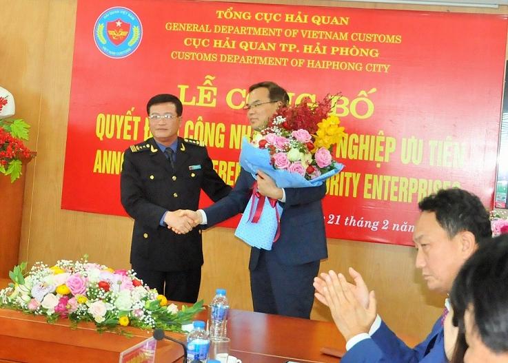 Phát biểu tại buổi lễ, Phó cục trưởng Nguyễn Kiên Giang cho biết, trong khoảng 20.000 doanh nghiệp có hoạt động xuất nhập khẩu tại Cục Hải quan Hải Phòng, việc công nhận doanh nghiệp ưu tiên đối với Cty LG Display Việt Nam, hiện Hải Phòng có 10 doanh nghiệp trong tổng số 68 doanh nghiệp được ưu tiên trên toàn quốc.