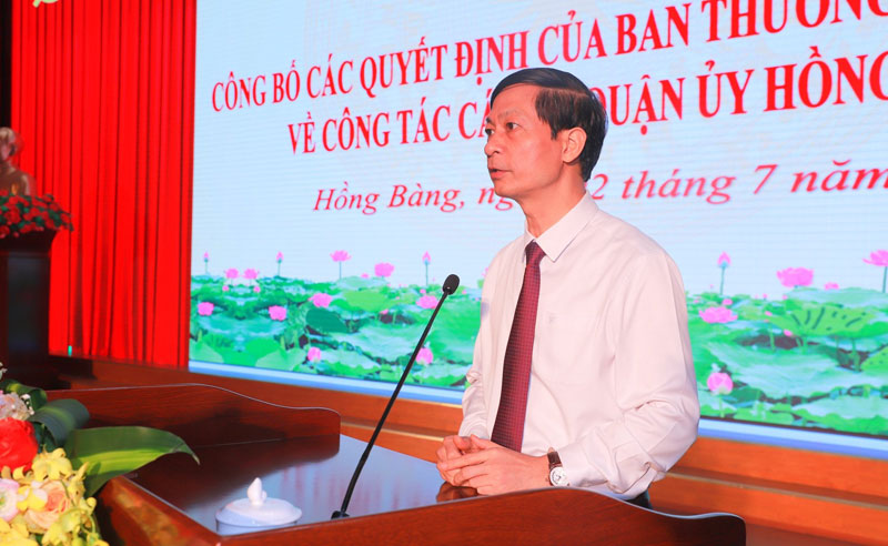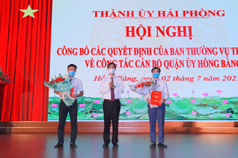 Chiều 2/7, Thường trực Thành ủy triệu tập Hội nghị công bố Quyết định của Ban Thường vụ Thành ủy về công tác cán bộ Quận ủy Hồng Bàng. Đồng chí Đỗ Mạnh Hiến, Phó Bí thư Thường trực Thành ủy chủ trì Hội nghị.