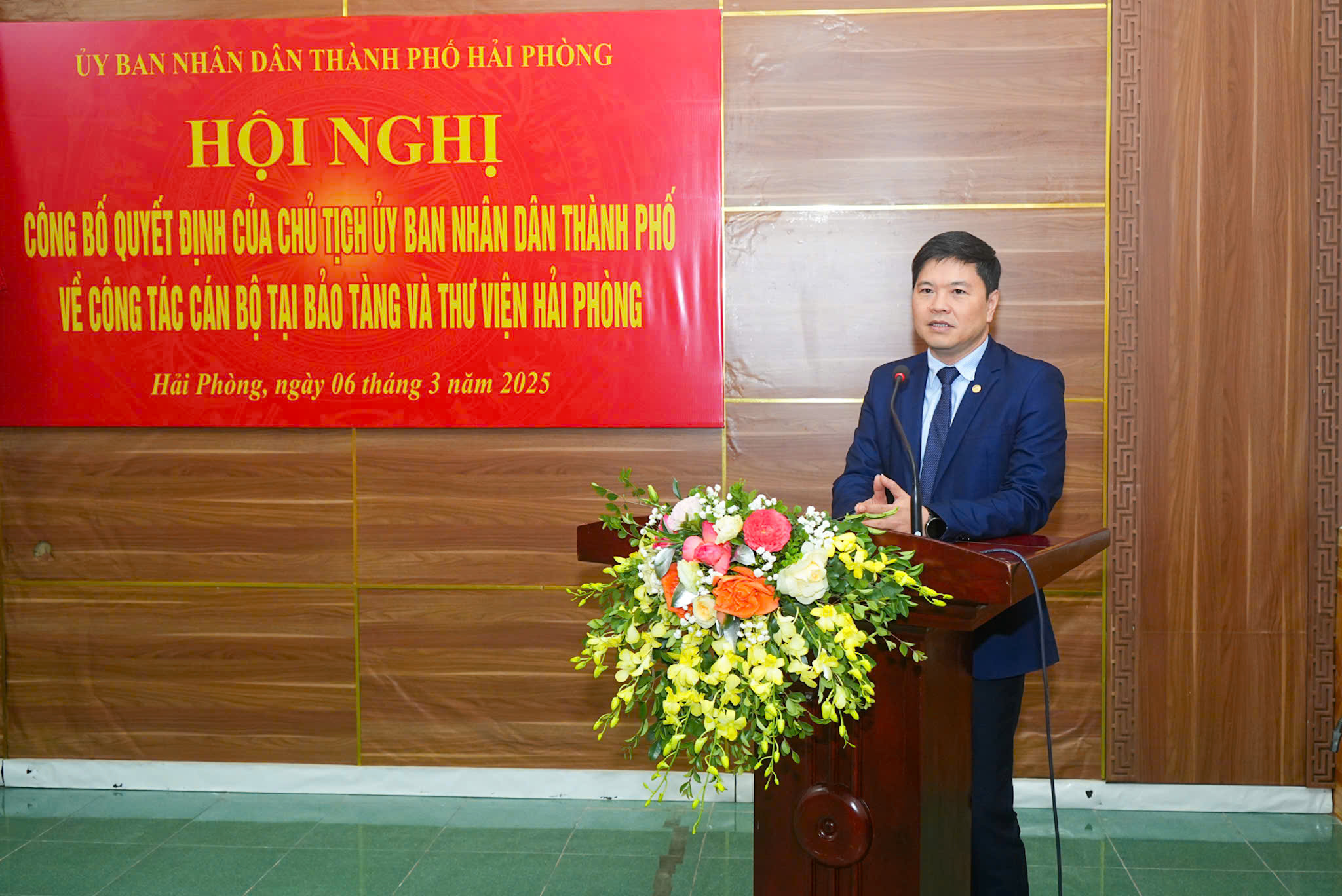 Chiều 6/3, Phó Chủ tịch UBND thành phố Hoàng Minh Cường chủ trì Hội nghị công bố Quyết định của Chủ tịch UBND thành phố về công tác cán bộ tại Bảo tàng và Thư viện Hải Phòng.