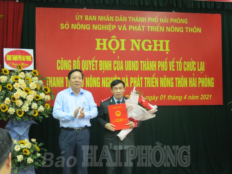 Theo Quyết định 4060 ngày 31/12/2020, UBND thành phố tổ chức lại Thanh tra Sở Nông nghiệp và Phát triển nông thôn Hải Phòng trên cơ sở hợp nhất Thanh tra Sở và thanh tra các chi cục trực thuộc Sở gồm: Chi cục Chăn nuôi-Thú y, Chi cục Thủy lợi và Phòng chống thiên tai; Chi cục Thủy sản, Chi cục Kiểm lâm; Chi cục quản lý chất lượng Nông lâm sản và Thủy sản; giải thể Phòng Thanh tra-Pháp chế tại các chi cục nói trên.