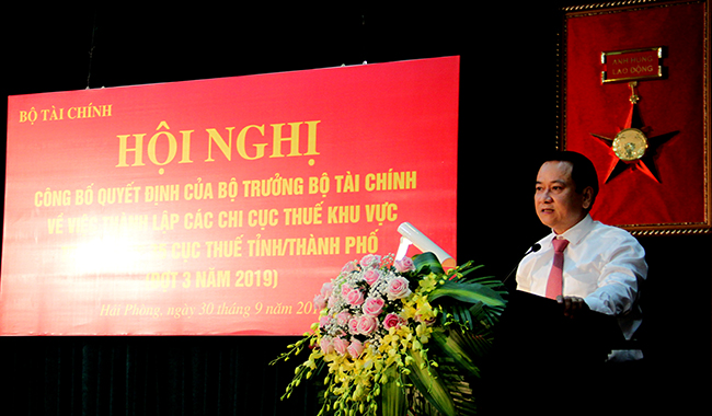 Sáng 30/9, Tổng Cục thuế tổ chức Hội nghị trực tuyến công bố các quyết định của Bộ trưởng Bộ Tài chính về việc hợp nhất các Chi cục thuế để thành lập các Chi cục thuế khu vực do đồng chí Đinh Tiến Dũng, Bộ trưởng Bộ Tài chính chủ trì.