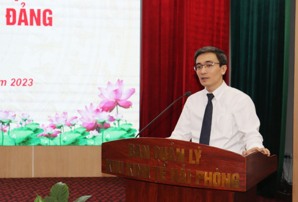 Phát biểu tại buổi Lễ, đồng chí Đào Phú Thùy Dương, Bí thư Đảng ủy Khu kinh tế Hải Phòng chúc mừng các Công ty đã có tổ chức cơ sở Đảng được thành lập đi vào hoạt động đồng hành với sự phát triển của Công ty, Chi bộ sẽ khẳng định vai trò là hạt nhân chính trị, lãnh đạo và tuyên truyền, vận động các thành viên trong Công ty thực hiện nghiêm túc mọi chủ trương, đường lối của Đảng, chính sách pháp luật của Nhà nước. Đồng thời đề nghị các Chi bộ sớm xây dựng quy chế, chương trình hành động; chú trọng đào tạo nguồn, kết nạp đảng viên mới; thực hiện nghiêm túc việc sinh hoạt chi bộ theo quy định Điều lệ Đảng; làm tốt công tác chính trị, tư tưởng, từ đó xây dựng Chi bộ trong sạch, vững mạnh, góp phần giữ ổn định, đồng hành cùng với doanh nghiệp trong sản xuất kinh doanh, làm tốt chức năng, nhiệm vụ của Chi bộ đảng trong doanh nghiệp có vốn đầu tư nước ngoài và doanh nghiệp có vốn tư nhân…