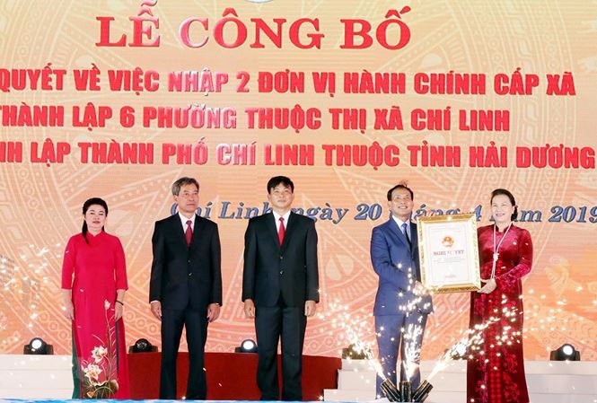 Chủ tịch Quốc hội Nguyễn Thị Kim Ngân trao Nghị quyết thành lập thành phố Chí Linh