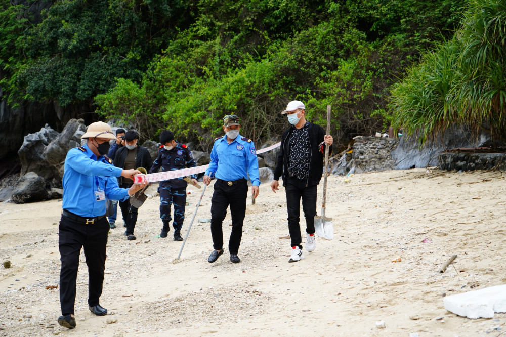 Sáng 18/4 tại bãi Tai Kéo, thuộc phân khu phục hồi sinh thái biển, Vườn quốc gia Cát Bà, xã Việt Hải (huyện Cát Hải), Thanh tra Sở Xây dựng thành phố phối hợp các lực lượng chức năng tổ chức công bố và thi hành Quyết định cưỡng chế buộc thực hiện biện pháp khắc phục hậu quả đối với công trình xây dựng vi phạm của Công ty TNHH Đảo Cát.