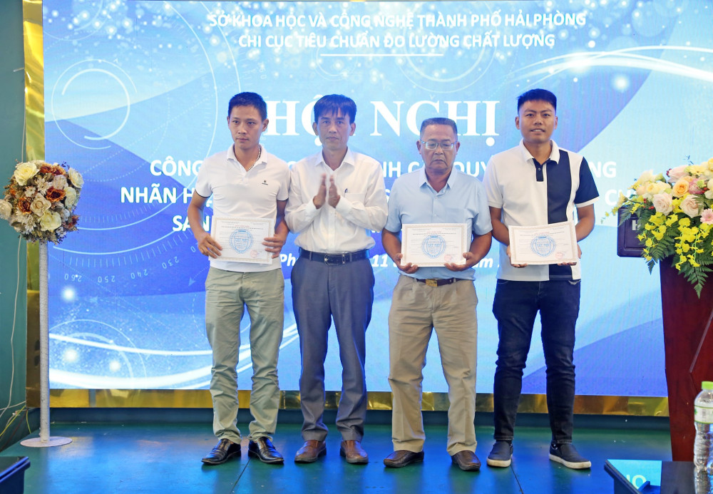 Tại hội nghị, lãnh đạo Chi cục TCĐLCL công bố các quyết định và trao giấy chứng nhận quyền sử dụng nhãn hiệu chứng nhận “sản xuất tại Cát Hải” cho 29 sản phẩm nước mắm của 7 doanh nghiệp huyện Cát Hải gồm: Công ty TNHH Quang Hải, Công ty TNHH thương mại và sản xuất sứa biển Tùng Khánh, Công ty TNHH nước mắm Lương Hải, Công ty TNHH Nam Phong Hải, Công ty TNHH thủy sản Song Hải, Công ty TNHH chế biến và dịch vụ thủy sản Phú Hải, Công ty TNHH nước mắm Vân Hải.