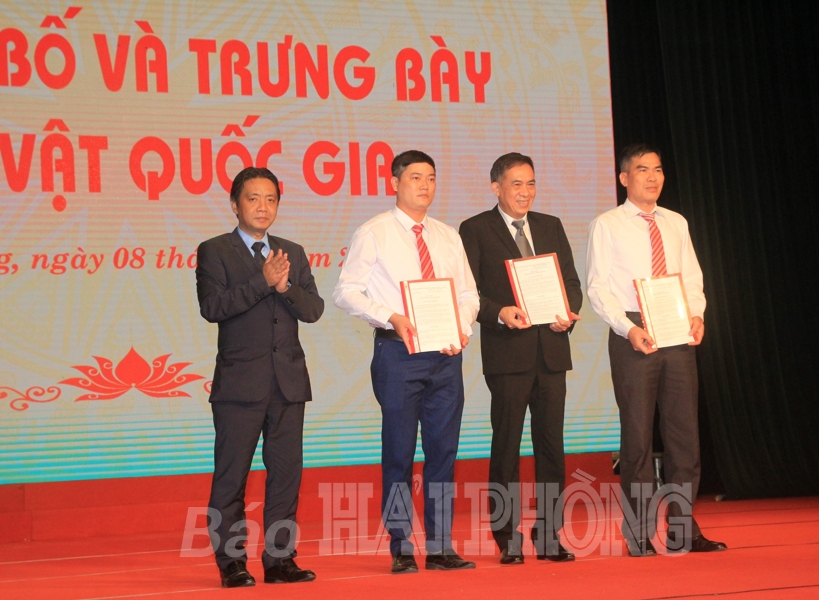 Tại lễ công bố, Thứ trưởng Bộ Văn hóa, Thể thao và Du lịch Hoàng Đạo Cương trao các quyết định của Thủ tướng Chính phủ công nhận 12 hiện vật của Hải Phòng là bảo vật quốc gia đến các ban quản lý di tích và cá nhân đang quản lý, sở hữu bảo vật quốc gia. 12 bảo vật quốc gia gồm: Thanh Long đao có niên đại thế kỷ 17-18, trưng bày tại Khu tưởng niệm Vương triều Mạc, ở xã Ngũ Đoan (huyện Kiến Thụy); tượng Thái tổ Mạc Đăng Dung, phù điêu Thái hoàng Thái hậu Vũ Thị Ngọc Toàn có niên đại thế kỷ 16, trưng bày tại chùa Trà Phương, ở xã Thụy Hương (huyện Kiến Thụy); sưu tập gốm men trắng An Biên có niên đại thế kỷ 11-12, trưng bày tại Bảo tàng Hải Phòng (quận Hồng Bàng).