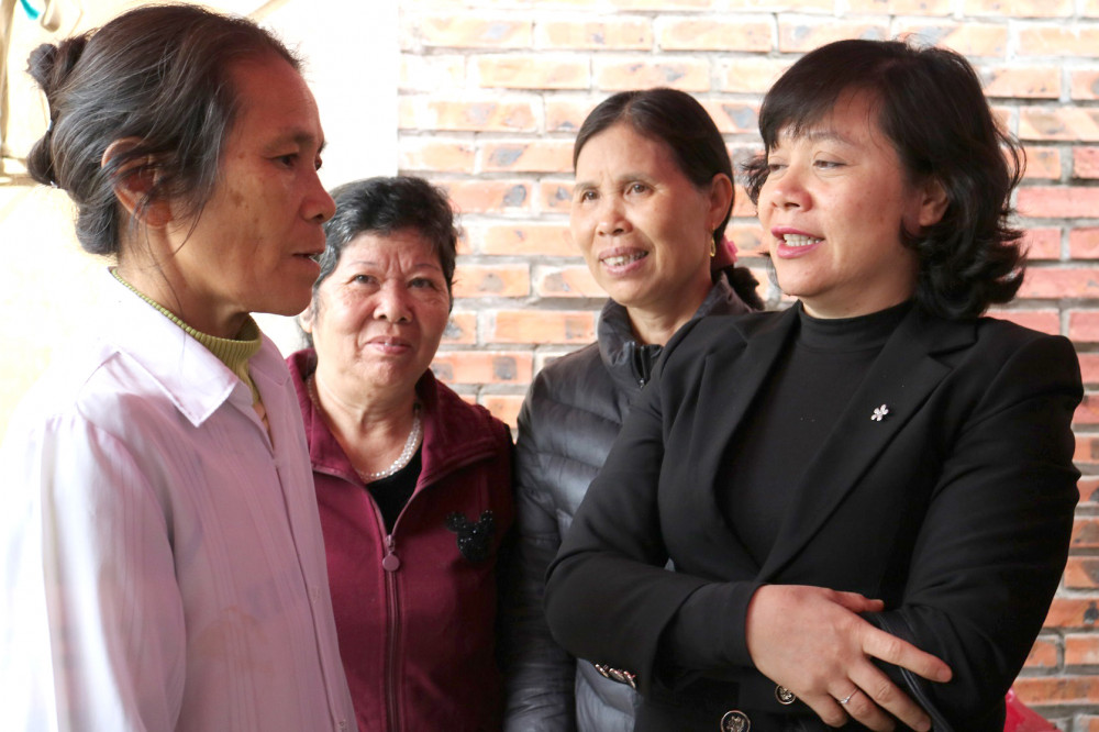 Giám đốc BHXH thành phố Nguyễn Thị Lộc chia sẻ và động viên bà Phất vượt lên khó khăn của hoàn cảnh