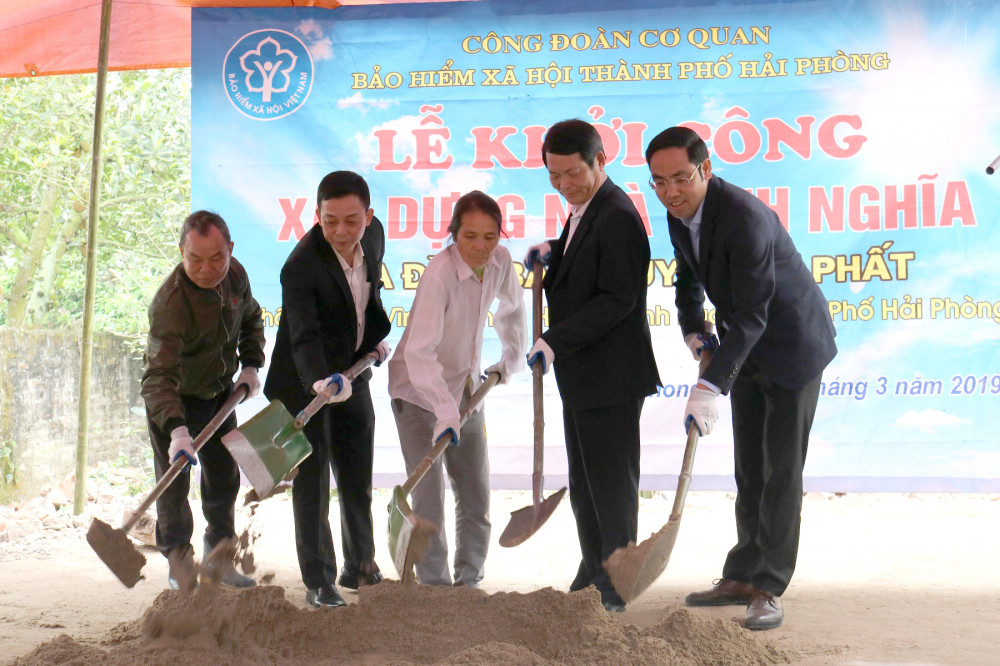 Sáng 11-3, Công đoàn cơ quan Bảo hiểm xã hội thành phố Hải Phòng phối hợp với cấp ủy, chính quyền địa phương tổ chức lễ khởi công xây nhà tình nghĩa tặng gia đình bà Nguyễn Thị Phất, một hộ đặc biệt khó khăn ở thôn 7, xã Vĩnh Phong, huyện Vĩnh Bảo. Tới dự lễ khởi công có Bí thư Đảng ủy, Giám đốc BHXH thành phố Hải Phòng Nguyễn Thị Lộc; Công đoàn cơ quan BHXH thành phố, Ban Giám đốc BHXH huyện Vĩnh Bảo.