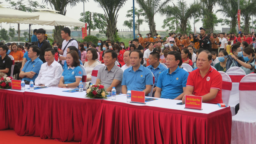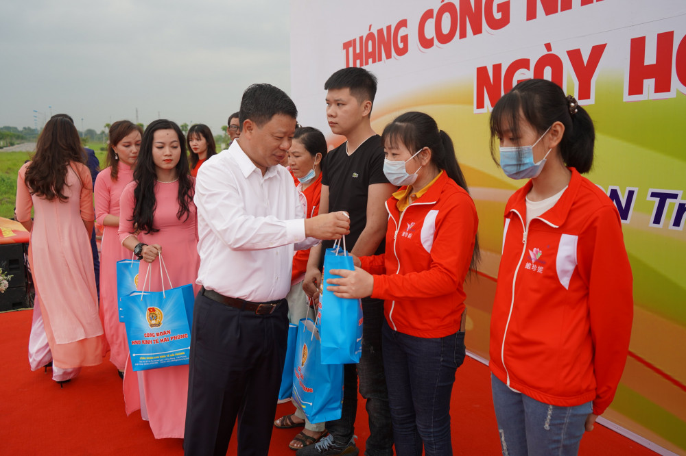 Tới dự chương trình có các đồng chí Lê Trung Kiên, Ủy viên Ban Thường vụ Thành ủy, Trưởng Ban Quản lý Khu kinh tế Hải Phòng; Tống Văn Băng, Ủy viên Ban chấp hành Tổng Liên đoàn Lao động Việt Nam, Chủ tịch Liên đoàn Lao động thành phố; Vũ Thị Kim Liên, Ủy viên Ban chấp hành Hội Liên hiệp Phụ nữ Việt Nam, Chủ tịch Hội Liên hiệp Phụ nữ thành phố; cùng các đồng chí lãnh đạo các cơ quan, đơn vị, doanh nghiệp liên quan và 1.500 cán bộ công đoàn, công nhân lao động đến từ các doanh nghiệp thuộc các Khu công nghiệp thành phố.