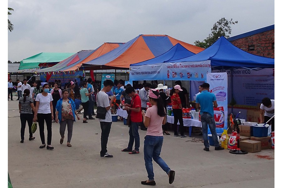 Người lao động tham gia chương trình “bán hàng giảm giá” do Công đoàn ngành Công Thương phối hợp Công ty TNHH Vico tổ chức.