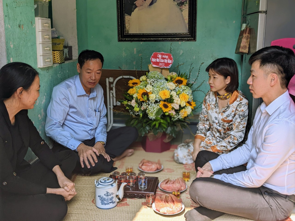 Nhân Kỷ niệm Ngày Nhà giáo Việt Nam 20/11, sáng 5/11, Công đoàn Ngành Giáo dục thành phố đã đi thăm hỏi và tặng quà cho một số giáo viên có hoàn cảnh khó khăn đang gặp bệnh hiểm nghèo ở quận Kiến An, huyện Tiên Lãng và huyện Vĩnh Bảo.