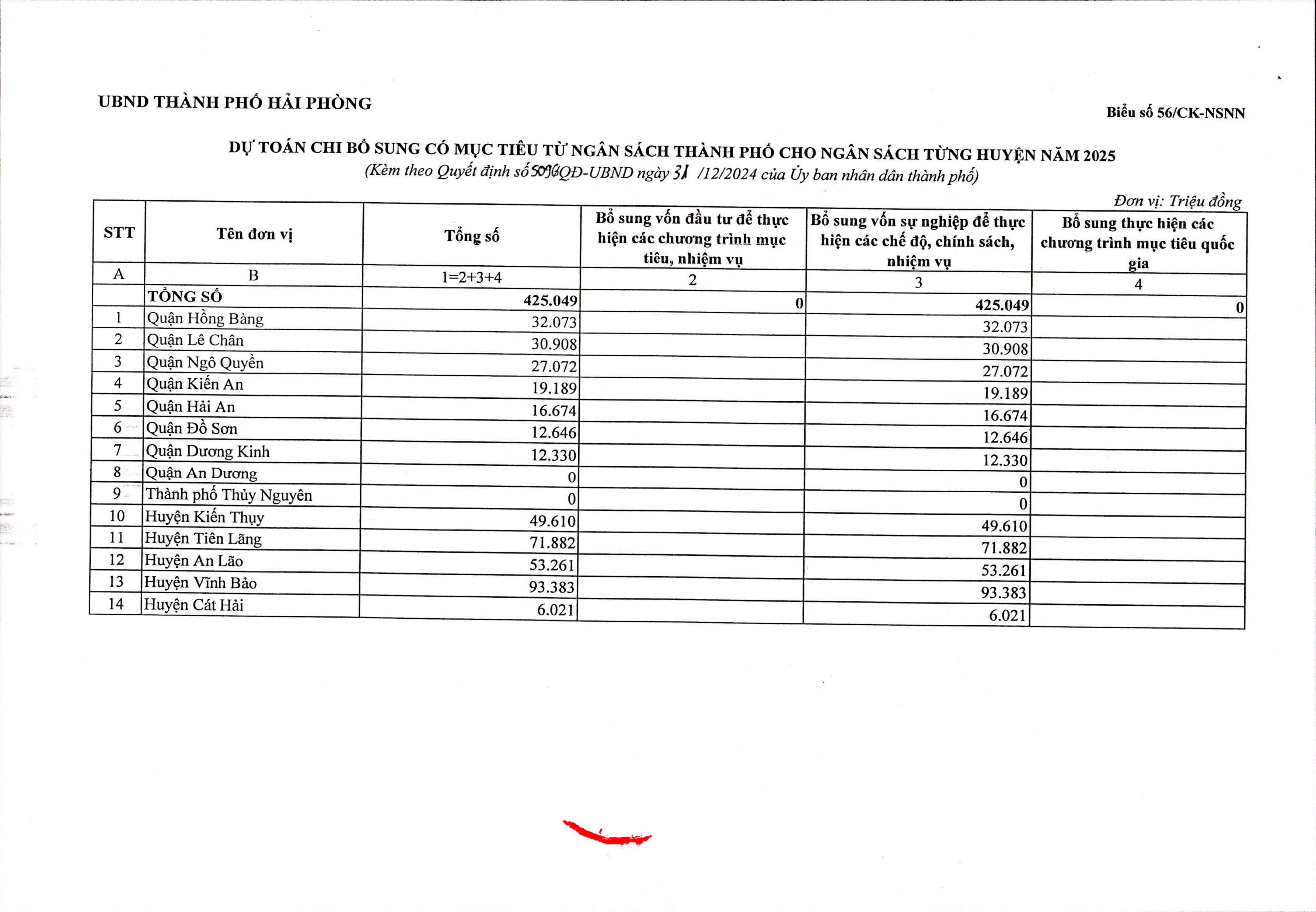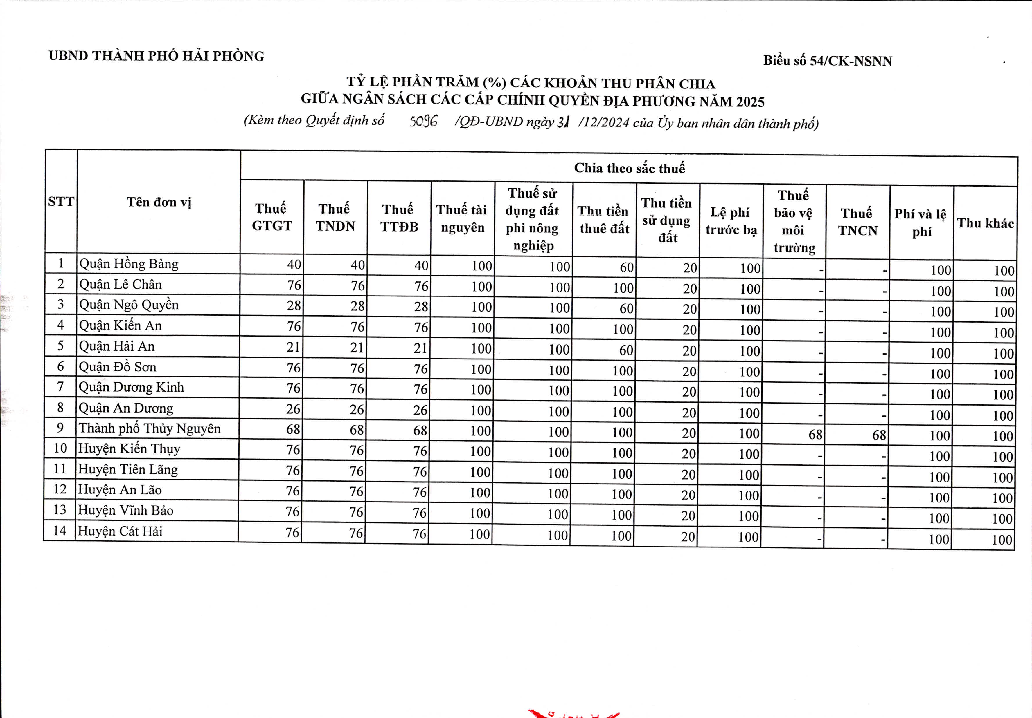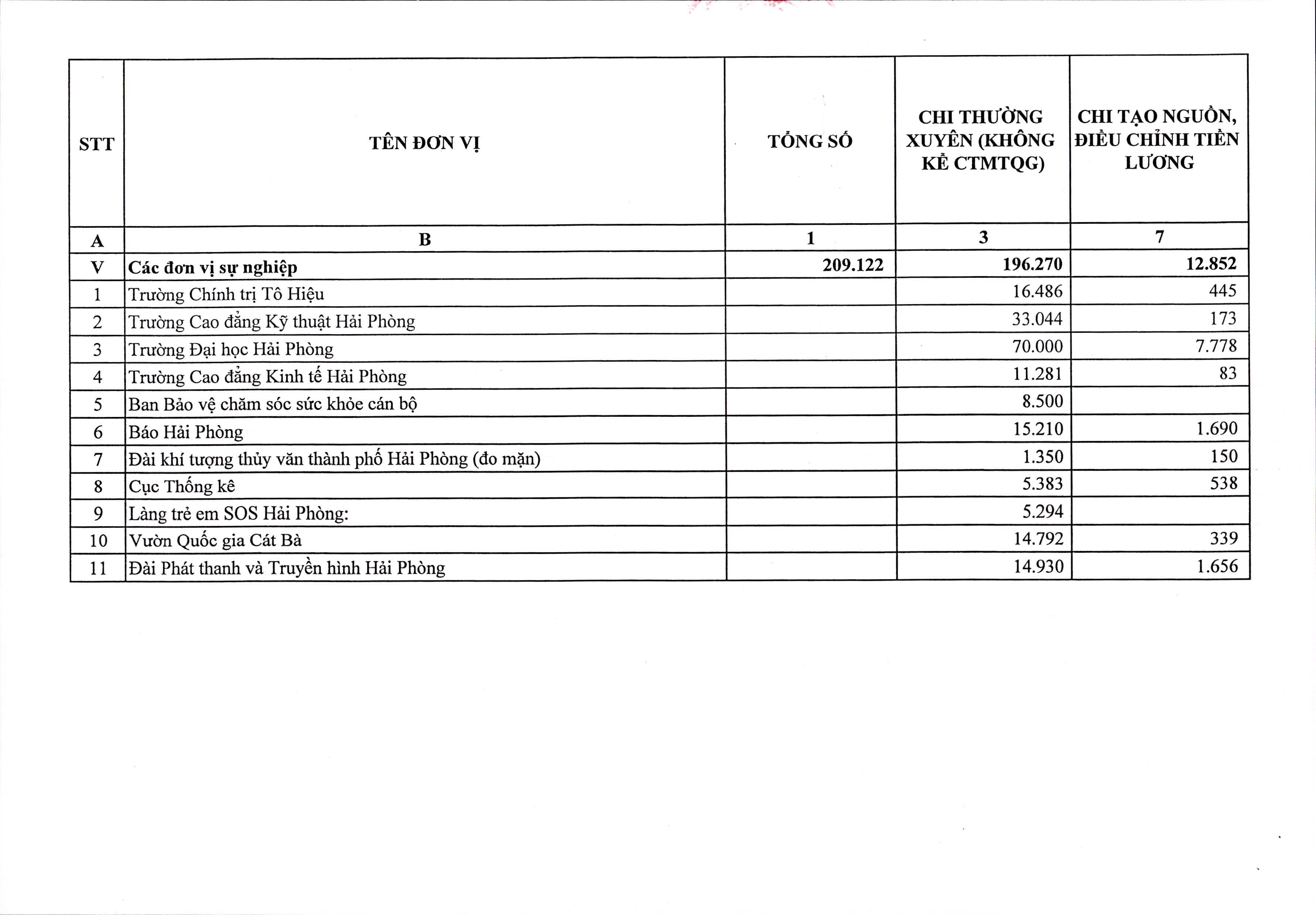 UBND thành phố đã có Quyết định số 5096/QĐ-UBND ngày 31/12/2024 công bố công khai dự toán ngân sách nhà nước năm 2025 của thành phố Hải Phòng.