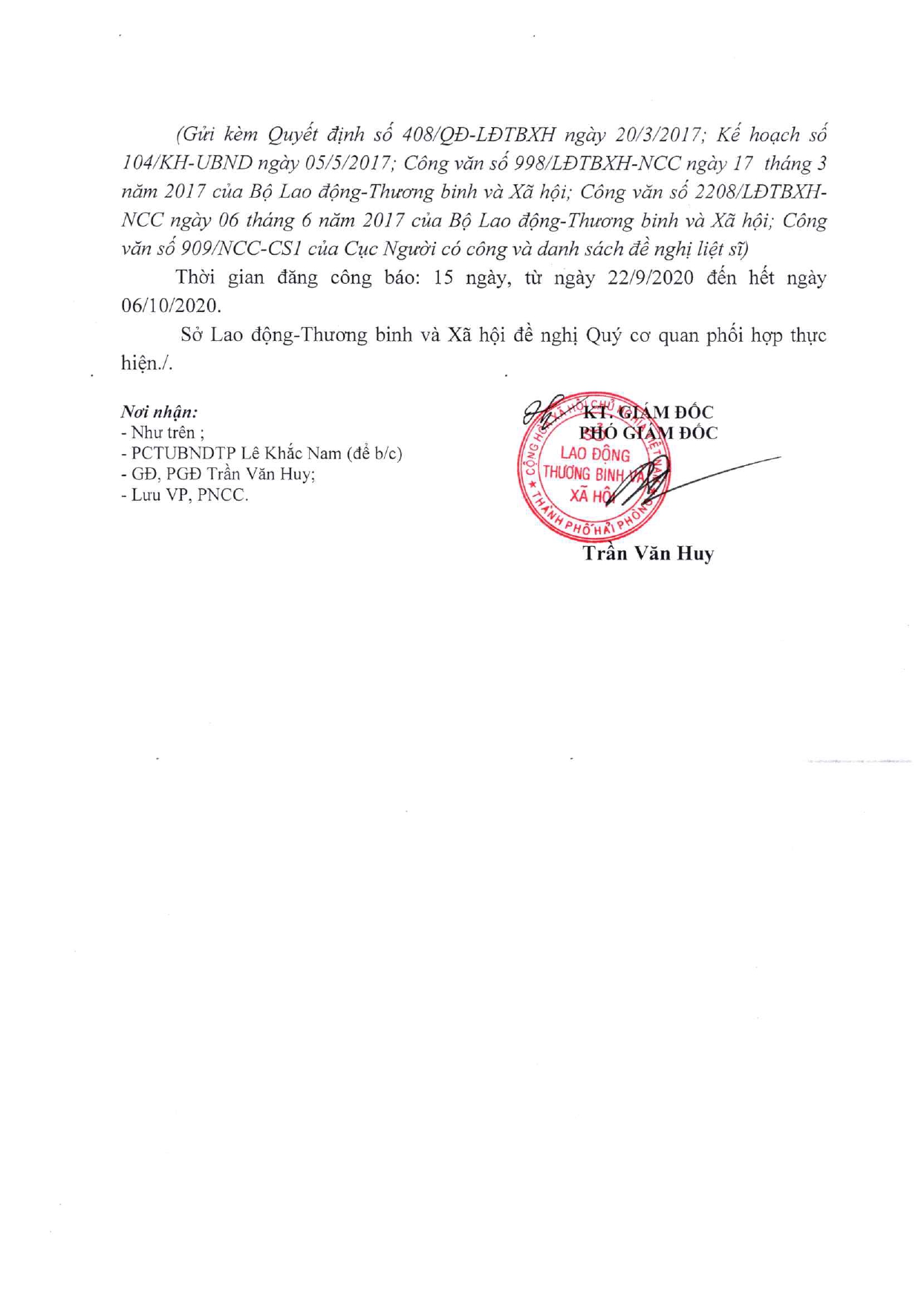 Sở Lao động-Thương binh và Xã hội vừa có Công văn số 3144/SLĐTBH-NCC, ngày 17/9/2020 về việc công khai hồ sơ tồn đọng xác nhận người có công.