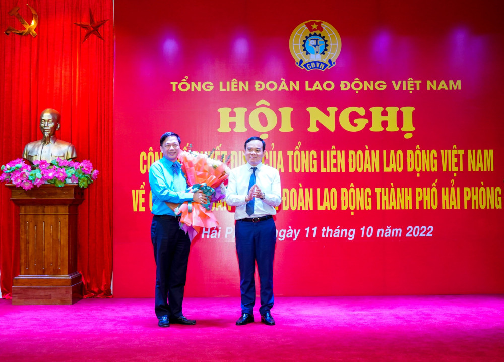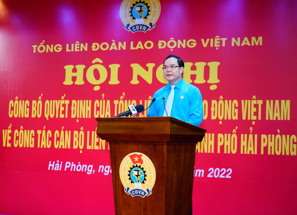 Chiều 11/10, Tổng Liên đoàn Lao động Việt Nam tổ chức Hội nghị công bố Quyết định về công tác cán bộ Liên đoàn Lao động thành phố Hải Phòng.